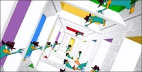 | Enquanto todos estão olhando para o outro lado, afetados pelo Olha Pra Lá-inator Phineas: O que a gente tá olhando? Ferb: Eu não faço a menor ideia. | |
