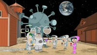 | "Fazenda Lunar" | "Bom, a fotossíntese vai começar a criar oxigênio, e depois vai criar também uma atmosfera. Nossas amigas bovinas vão ficar numa boa." |